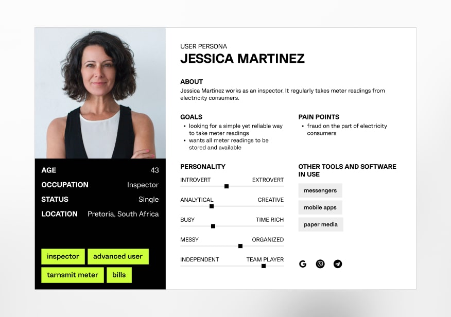 In this case, the design tasks encompass a range of aspects associated with developing and designing the MeterSnap application. Creating an intuitive and aesthetically pleasing user interface for the mobile app while ensuring an excellent user experience involved designing user-friendly navigation, clear control elements, and an efficient screen structure to facilitate inspectors' work and enhance customer interaction with the application.